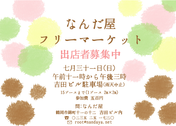 ポストカード販売などでお世話になっているなんだ屋さんで行われるフリーマーケットに出店します。