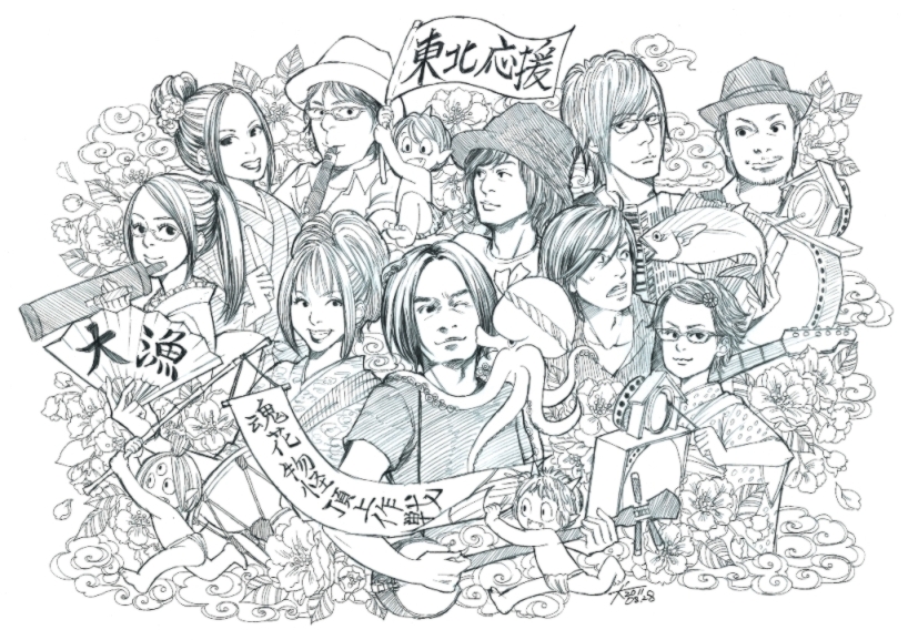 ソウル・フラワー・ユニオンのニュー・ミニアルバム「キセキの渚」の限定特典ステッカーのイラストとデザインを担当させていただきましたー。